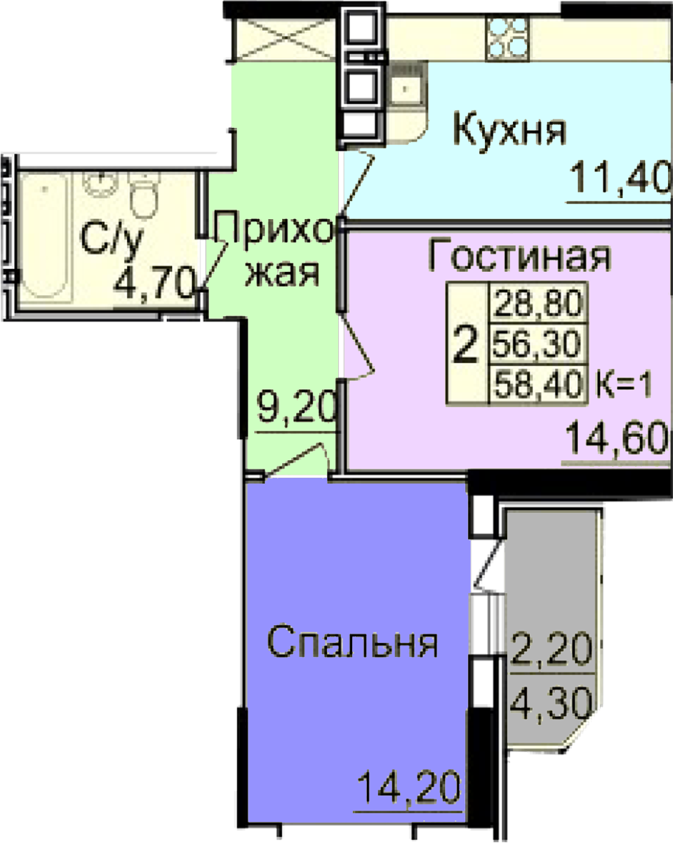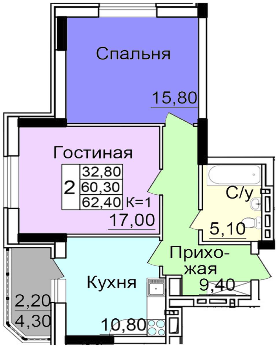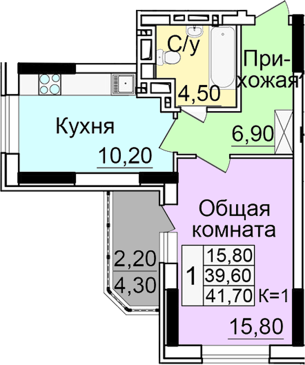 Площадь: 41,7 м.кв.