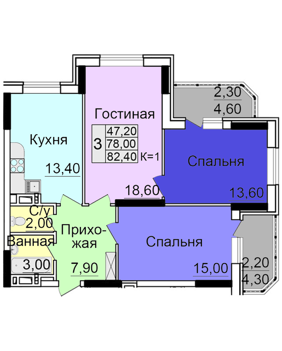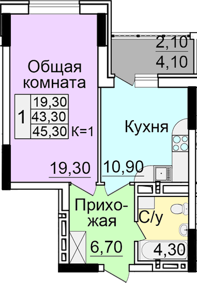 Площадь: 45,3 м.кв.