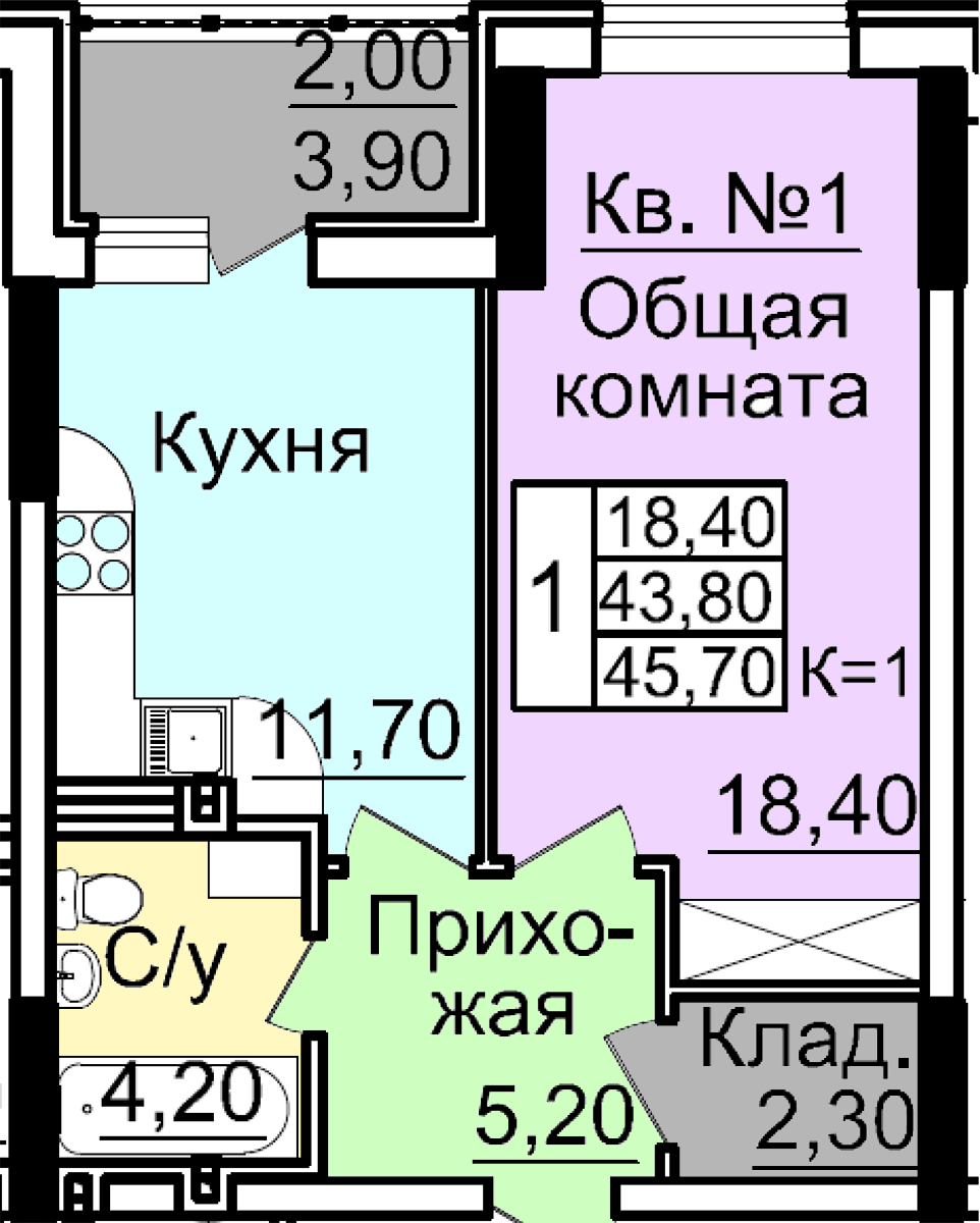 Площадь: 45,7 м.кв.